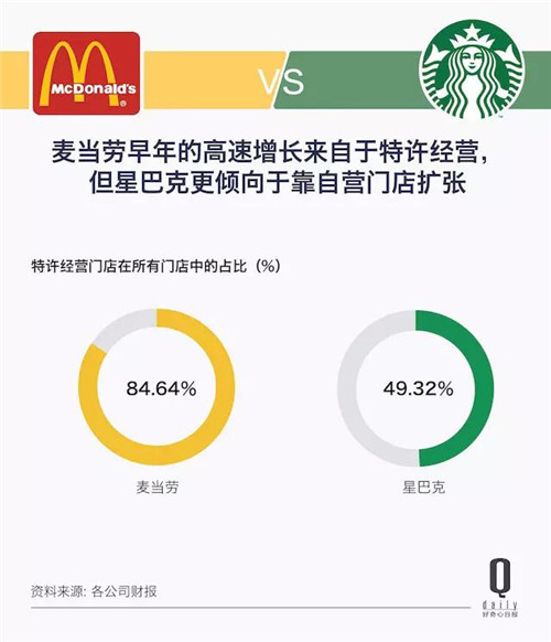 麥當(dāng)勞靠的是特許經(jīng)營(yíng),而星巴克的幾萬(wàn)家門店大多都是自營(yíng)