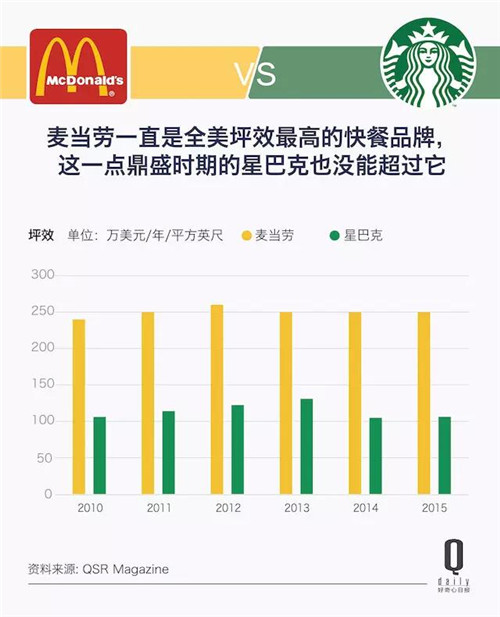 麥當(dāng)勞比星巴克的坪效高,但每個(gè)星巴克員工為公司創(chuàng)造的收益比麥當(dāng)勞要高