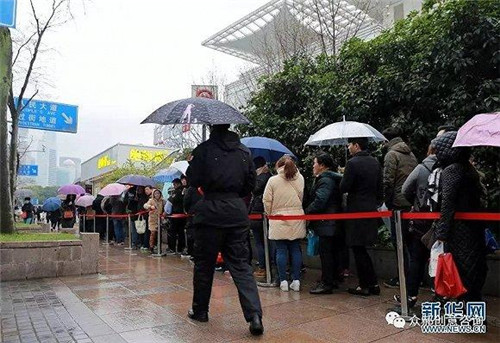 下雨也擋不住人們排隊的熱情