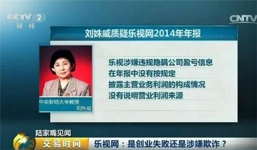 緊接著2015年6月底,曾經(jīng)揭露藍田股份造假的中央財經(jīng)大學(xué)教授劉姝威,也質(zhì)疑樂視涉嫌違規(guī)隱瞞公司盈虧信息,在年報中沒有按規(guī)定披露主營業(yè)務(wù)利潤的構(gòu)成情況,沒有說明營業(yè)利潤來源。