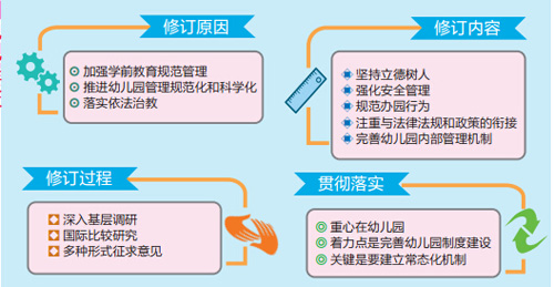 隨著經(jīng)濟(jì)社會(huì)的發(fā)展,教育改革的不斷深入,學(xué)前教育事業(yè)發(fā)展迅速,幼兒園教育的內(nèi)外環(huán)境和條件也發(fā)生了巨大變化。因此,《規(guī)程》需要在新的形勢下進(jìn)行調(diào)整,不斷推進(jìn)幼兒園內(nèi)部管理和辦園行為的規(guī)范化,促進(jìn)幼兒園保教質(zhì)量不斷提升?!?nbsp;