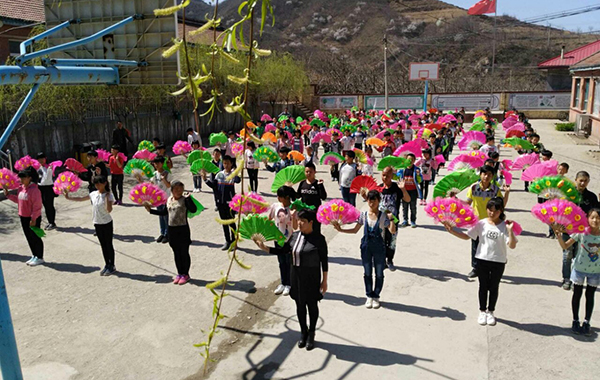 在村小工作了一段時(shí)間后, 趙銀鳳發(fā)現(xiàn)了一個(gè)問題:一個(gè)孩子的成長離不開家庭教育,學(xué)校百分之五十的學(xué)生都是留守兒童,整個(gè)村莊有很多留守婦女、空巢老人,這些家長的業(yè)余生活就是在聊天、打麻將中度過, 卻沒有時(shí)間關(guān)注孩子成長。于是她有了一個(gè)大膽的想法:把家長、村民也納入教育對(duì)象,利用寒暑假、休息日調(diào)動(dòng)家長們的積極性。于是她幫助村民成立老年協(xié)會(huì)、婦女學(xué)校、家長學(xué)校、秧歌隊(duì)等組織,組織孩子們、家長與村民節(jié)目表演等活動(dòng),推動(dòng)學(xué)習(xí)型家庭、學(xué)習(xí)型組織、學(xué)習(xí)型社區(qū)的建立,使學(xué)校成為整個(gè)村莊的文化中心;家、校、村三者結(jié)合,把村民帶到課堂,把課堂帶進(jìn)村莊,不僅提升了學(xué)生的能力和品質(zhì),提高了村民的生產(chǎn)生活技能,豐富了村民的文化生活,改變了村里白喜事大操大辦等陋習(xí)。