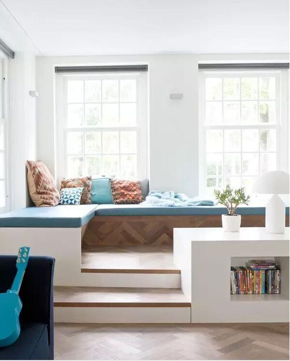多人印象中的飄窗就是鋪個墊子,拉個窗簾,最多擺個桌子放倆蒲團。但是飄窗要是好好改造,說不能能給你多弄出一間房!