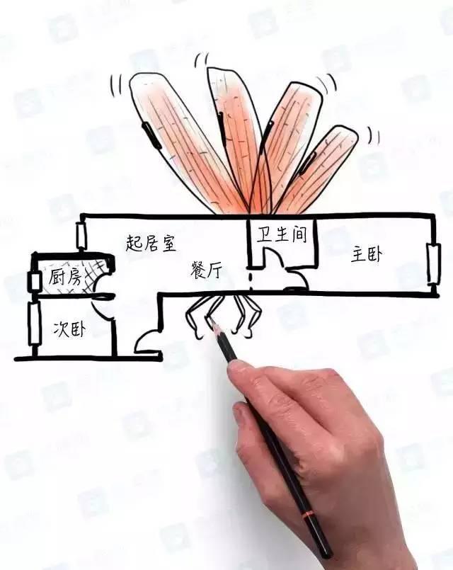 3、客廳有采光,但是房間旁的過道又長又窄,臥室在最盡頭,光線完全照不過去,衛(wèi)生間沒有窗戶,又和廚房一起堵在過道處,味道一定不好聞。