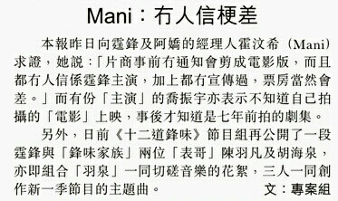 港媒采訪阿嬌經(jīng)紀(jì)人霍汶希有關(guān)《情劍》的報道