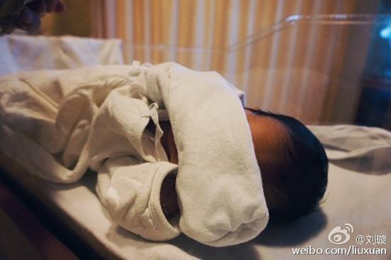 10月8日,劉璇[微博]平安產下一子。11日,她在微博上曬出了新生兒的照片,老公王弢轉發(fā)笑稱干爹干媽太多。