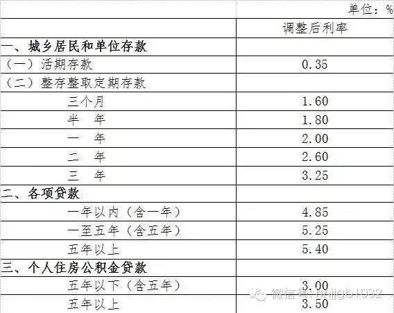 本次金融機構人民幣存貸款基準利率調整表
