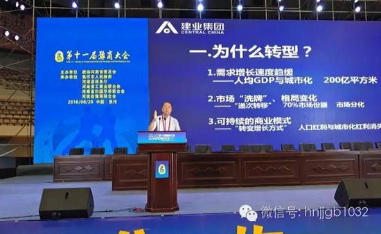 在主題論壇上,建業(yè)住宅集團(中國)有限公司董事局主席、嵩山資本創(chuàng)始人胡葆森以建業(yè)為例,談到河南房地產企業(yè)的轉型。他認為,隨著人們需求增長速度的放緩以及市場的不斷分化,房地產市場也在進行著洗牌、競爭格局發(fā)生變化。