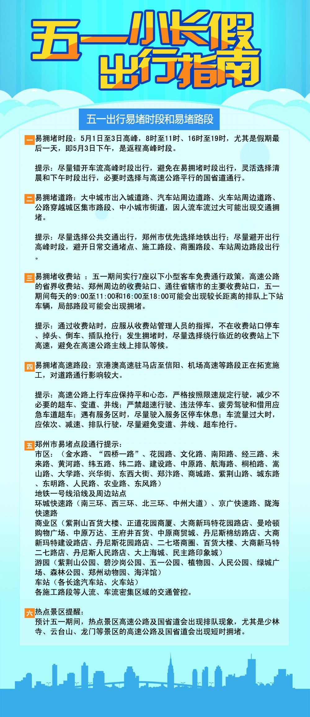 盡量避開假期第一天和最后一天的8時(shí)至11時(shí)、16時(shí)至19時(shí)兩個(gè)高峰時(shí)段,特別是假期最后一天5月3日下午是返程高峰時(shí)段。