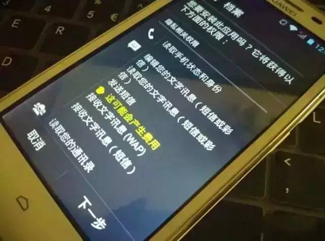 可以看到這個app偽裝的很好,名字就叫做“檔案”,細心的朋友會發(fā)現(xiàn),這個app還需要讀取手機身份以及短信甚至是通訊錄!一般的app都沒有這些權限需求的,顯然這是一個木馬病毒,記者就沒有繼續(xù)進行下一步了。