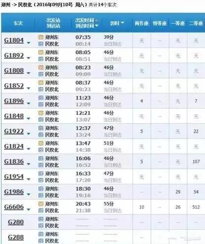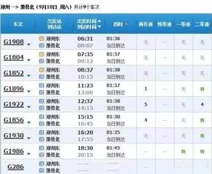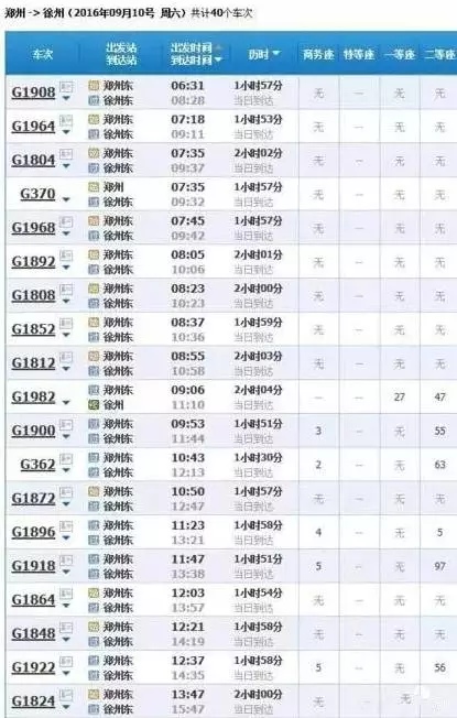 最快的一趟車G368/9,19點05分從上海虹橋始發(fā),23點02分到達鄭州東,耗時3小時57分,中途僅停靠南京和徐州站,其余列車運行時間都在4小時到5小時之間。