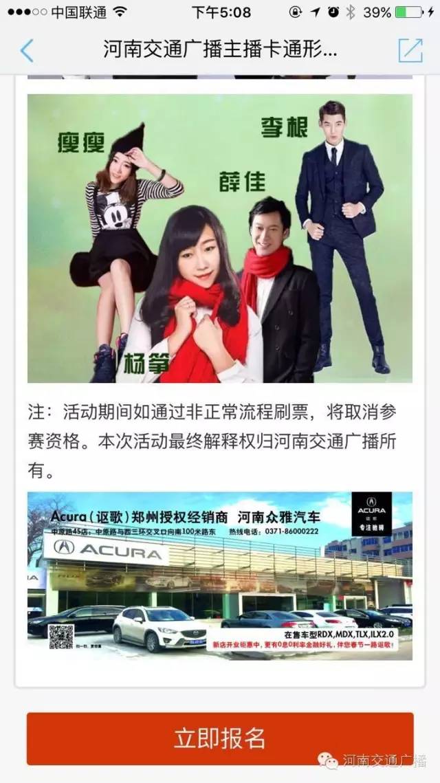 注:活動(dòng)期間如通過(guò)非正常流程刷票,將取消參賽資格。本次活動(dòng)最終解釋權(quán)歸河南交通廣播所有。