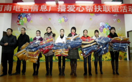 2011年12月31日,河南電臺(tái)信息廣播的領(lǐng)導(dǎo)、主持人和編輯記者來(lái)到鄭州市二七區(qū)輔讀學(xué)校,感悟命運(yùn)、感受大愛、感謝生活,給孩子們送去衣服和文具,獻(xiàn)上動(dòng)聽的心聲,與師生們一起在互動(dòng)游戲中傳遞愛心,迎接新年!