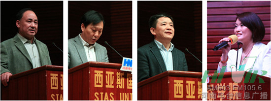左起:鄭州大學(xué)西亞斯國際學(xué)院黨委書記費(fèi)鶴祥 河南人民廣播電臺副臺長李海軍