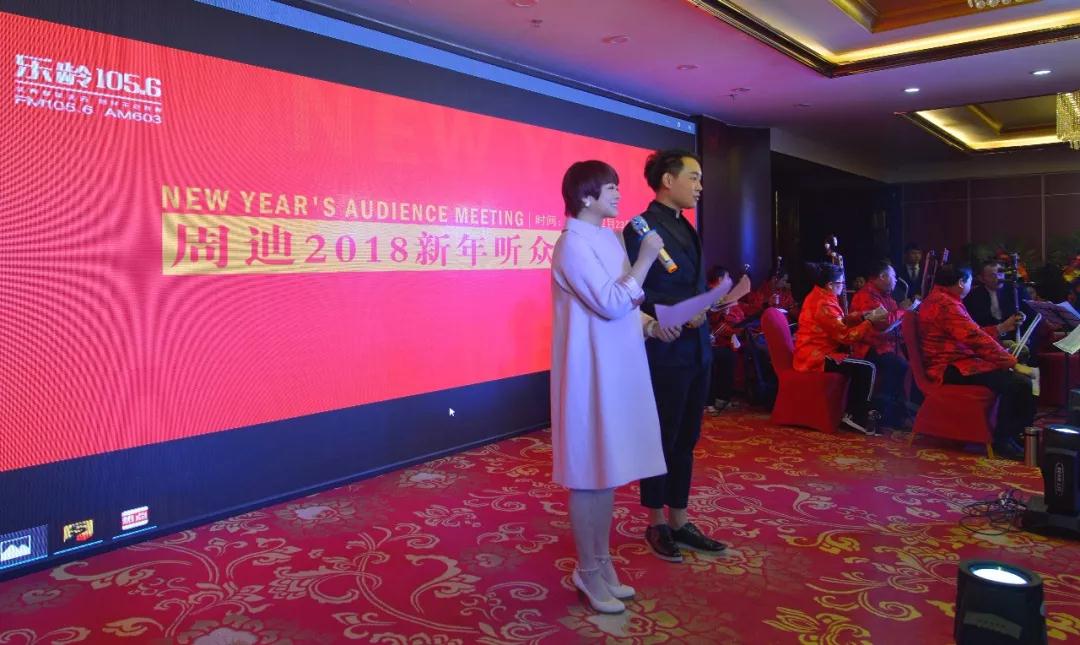 “我們的女神叫小周,美麗大方人優(yōu)秀。百萬戲迷手挽手,你主持的節(jié)目愛不夠,讓我們舉起歡慶的美酒,祝節(jié)目越辦越好與時俱進競風流……”伴隨著聽眾張學紅原創(chuàng)戲歌《我們的女神》,周迪2018新年聽眾見面會正式拉開帷幕。
