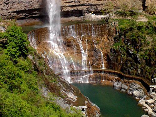 紅石河碧水橫溢、紅綠相映、色彩斑斕、明麗如畫,因海拔1100米被譽為“太行天河”。從紅石河畔俯瞰,山谷幽深、流水潺潺,河水順著光潔平整、錯落有致的紅石板流淌不息,直沖而下形成又一著名景點——天河大瀑布。紅石河的右畔是觀音洞,觀音洞里的泉水常年不斷、甘甜可口,用來泡茶增三分香,煮飯增加三分甜,現(xiàn)在敞開供應(yīng),保你一杯解風(fēng)塵,二杯去疲乏,三杯大汗落。 八里溝的山,八里溝的水,甚至八里溝的每一塊石頭都引起世界的好奇。景區(qū)森林覆蓋率達(dá)90%,如今,八里溝景區(qū)已經(jīng)成為國內(nèi)很多前衛(wèi)、時尚的游客非常向往的一個人間天堂、世外桃源,也是春季旅游的經(jīng)典線路。