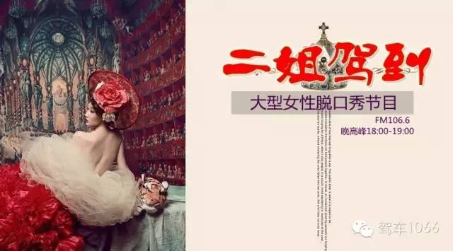 河南電臺(tái)駕車1066是河南電臺(tái)新生的覆蓋全省、針對(duì)駕車人群的廣播頻率,《二姐駕到》是該頻率播出的一檔女性脫口秀節(jié)目。它以女性的視角出發(fā),看世界、說男人、聊情感。節(jié)目風(fēng)格犀利、辛辣,節(jié)目播出后,被男性聽眾戲稱為:《整死男人的一百招》。節(jié)目播出時(shí)間在廣播市場(chǎng)的黃金時(shí)段:下班晚高峰18:00-19:00。節(jié)目通過微信語音、文字的互動(dòng)方式,幫助聽眾解決情感困惑,傾聽更多男人女人的聲音,帶你了解女人,看透男人,是目前鄭州上空同時(shí)段的第一檔女性脫口秀節(jié)目。主持團(tuán)隊(duì)由5名不同年齡段的女性構(gòu)成,她們代表了20歲到40歲不同年齡層次女性的觀點(diǎn),又各自有著鮮明的性格。她們言語辛辣,讓男人們滿頭大汗、女人們拍手稱快!
