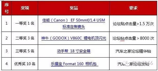 為了滿足眾多攝影愛好者和車迷們的拍攝需求,中原國際車展聯(lián)合攝影愛好者協(xié)會(huì)共同舉辦“中原國際車展汽車攝影大賽”。只要你愛車、喜歡拍照,就可以報(bào)名參賽!此外,在汽車之家發(fā)布論壇帖可以獲得大獎(jiǎng)喲~