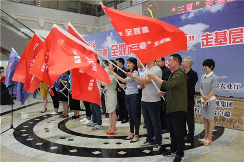 年輕的身姿,年輕的聲音,只等著一聲令下,他們就會(huì)奔赴“三夏”前線,用話筒和鏡頭記錄“三夏”實(shí)況,用腳步丈量河南“三夏”的進(jìn)程。出席儀式的領(lǐng)導(dǎo)給記者授旗,記者們激動(dòng)地?fù)u了起來(lái)。