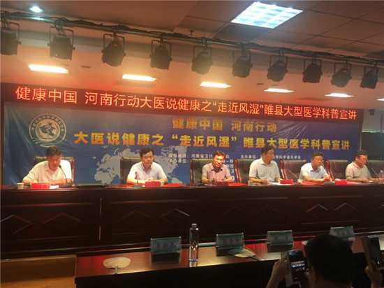 07月23日上午,由河南省衛(wèi)計(jì)委宣傳處指導(dǎo),河南省醫(yī)學(xué)科普學(xué)會(huì)、醫(yī)藥衛(wèi)生報(bào)主辦的“健康中國 河南行動(dòng) 大醫(yī)說健康”開啟第二站:“走進(jìn)風(fēng)濕”睢縣大型醫(yī)學(xué)科普宣講義診活動(dòng)。
