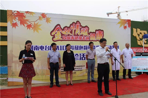 今天(9月24日)上午,河南電臺綠色頻道“金秋情暖——為城市建設(shè)者送健康”大型系列義診活動,走進中建三局鄭州航空港建筑工地,為建筑工人們免費檢查身體,送去健康。