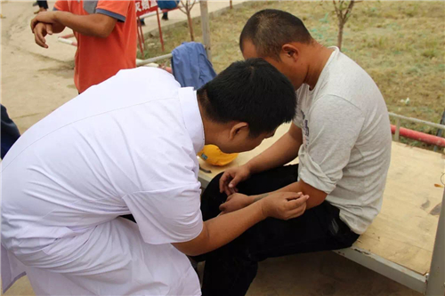 當(dāng)天前來求診的工友絡(luò)繹不絕,專家們耐心解答工友疑問,傳授醫(yī)療保健知識,指導(dǎo)群眾平常要注意身體保健,養(yǎng)成良好的飲食習(xí)慣和生活習(xí)慣,甚至還為頸椎病患者、腰椎病患者進行即時針灸。義診從上午10點開始,一直開展到中午12點多,就診人群才慢慢散去,專家們早已餓得饑腸轆轆。專家們精湛的醫(yī)療技術(shù),耐心細致的服務(wù),受到建筑工人們的一致好評。