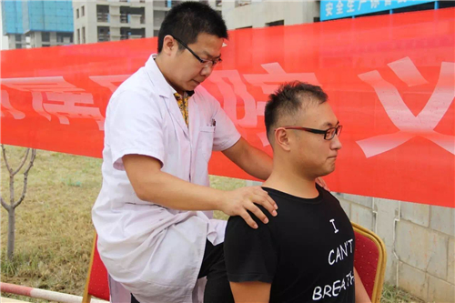建筑工人平時工作勞累,肩頸都需要放松,看我們的醫(yī)生按摩技術(shù)也是灰常得高呢!