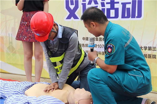 醫(yī)生們一邊操作,一邊講解,工人們有不明白的,還可以現(xiàn)場提問。幾乎每一位認真學(xué)習(xí)的建筑工人都想一試身手,醫(yī)生則在一旁一對一指導(dǎo)。