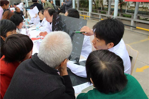 雖然天氣轉(zhuǎn)涼,但絲毫沒有澆熄大家的熱情,當(dāng)?shù)氐木用裨缭鐏淼搅x診現(xiàn)場,等候省會(huì)頂尖醫(yī)院專家為自己診斷,專家們也是十分準(zhǔn)時(shí),提前到現(xiàn)場為患者看診。