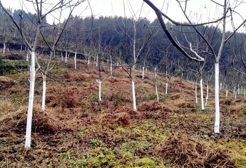入冬后及時用涂白劑將核桃樹干和主枝均勻涂刷,使樹體溫度變化穩(wěn)定,不會有凍凍融融的情況,既防凍、防日灼,又能殺死樹干中的病菌、蟲卵和成蟲,還可有效防止牲畜啃咬樹枝樹皮。涂白在11月中旬進(jìn)行。