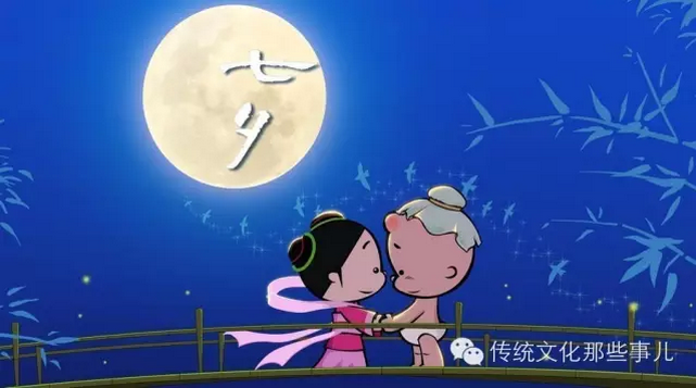 在晴朗的夏秋之夜,天上繁星閃耀,一道白茫茫的銀河象天橋橫貫?zāi)媳?,在河的東西兩岸,各有一顆閃亮的星星,隔河相望,遙遙相對(duì),那就是牽牛星和織女星。七夕坐看牽牛織女星,是民間的習(xí)俗。相傳,在每年農(nóng)歷七月初七的夜晚,是天上織女與牛郎在鵲橋相會(huì)之時(shí)??椗且粋€(gè)美麗聰明、心靈手巧的仙女,凡間的婦女便在這一天晚上向她乞求智慧和巧藝,也少不了向她求賜美滿(mǎn)姻緣,所以七月初七也被稱(chēng)為乞巧節(jié)。