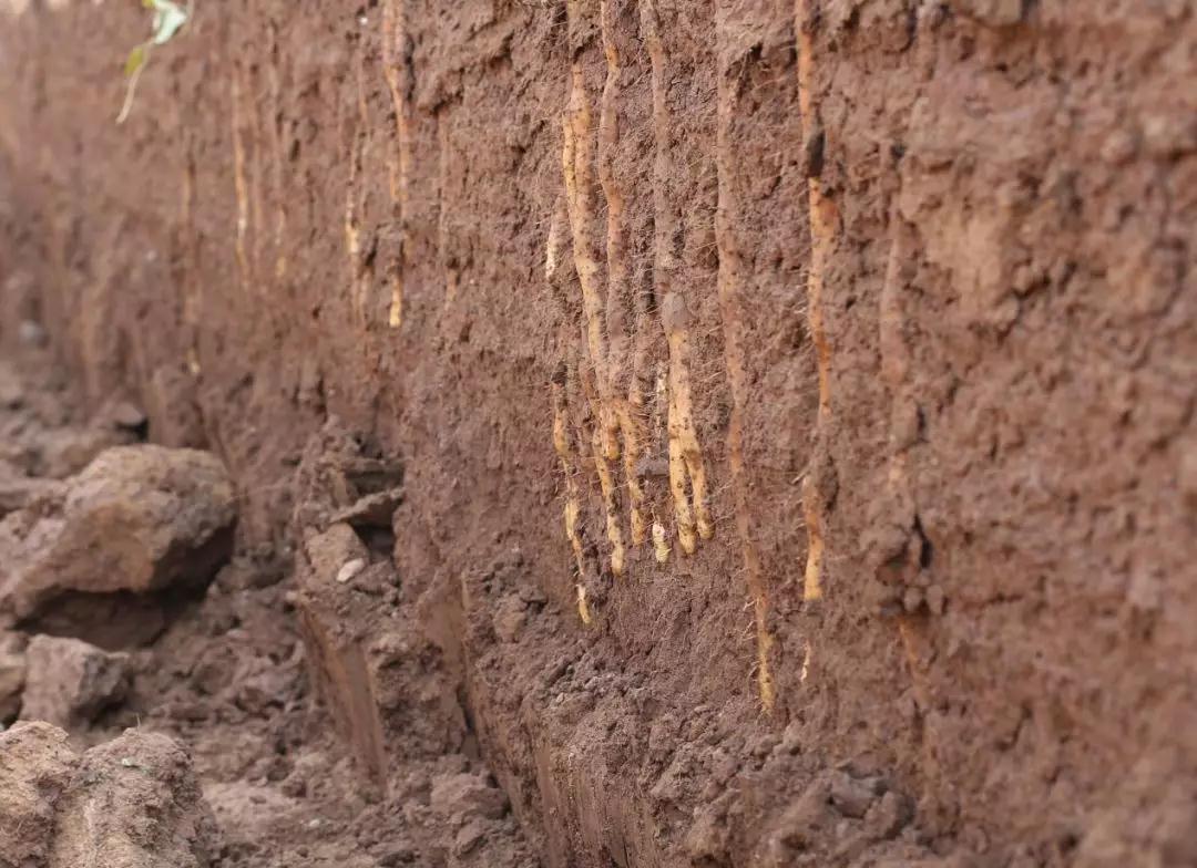 壚土鐵棍山藥,形狀像樹根,沙地種植的山藥則又長(zhǎng)又直,鐵棍山藥的顏色偏深一些。