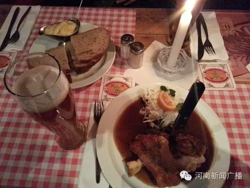 到了德國,當(dāng)然要吃一頓德國餐:肘子……配上德國啤酒,第一口下去,哭了……沒有饅頭不說,甚至沒有米飯……要在蒜瓣都沒有的情況下,吃完這樣一個肘子,作為河南人的我,真的是很痛苦……