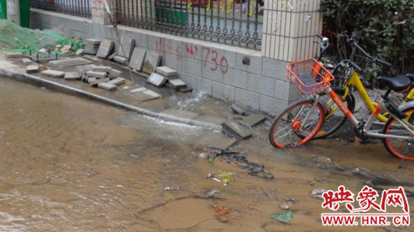 早上6時(shí)30分許,未來(lái)路辦事處巡防隊(duì)員司廣紅等人發(fā)現(xiàn)居民因小區(qū)積水,出行困難,用磚塊鋪路,方便居民進(jìn)出。由于不明確是自來(lái)水管道還是熱力管道發(fā)生了爆裂,巡防隊(duì)員也找不到附近的閥門,只好先撥打鄭州城建服務(wù)熱線12319反映此事。