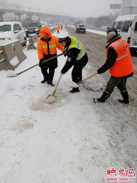 交警六大隊(duì)增加對(duì)金水東路、商鼎路、商都路的巡查密度,利用喊話器在事故易發(fā)路段提醒司乘人員減速慢行,及時(shí)掌握路面積雪、車流量等道路通行情況。市區(qū)交警九大隊(duì)在金水路沿線協(xié)助清掃積雪,救助滑倒的行人5人。