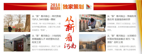 同時,東方今報還推出2018河南兩會特別策劃——“幸福都是奮斗出來的”,側重報道正在奮斗且勵志的社會中堅力量,一個個鮮活的人物故事勉勵我們,為中原更加出彩而努力奮斗。截至目前已刊登四篇報道,分別是《幸福是奮斗出來的系列報道之(1) 河南妞兩次為“彭媽媽”表演 特邀列席縣政協(xié)會議》《幸福是奮斗出來的系列報道之(2) 90后辭年薪二十萬工作創(chuàng)業(yè):我的心愿是“藝術+”》《幸福是奮斗出來的系列報道之(3) “海歸農(nóng)夫”師鵬飛:現(xiàn)代農(nóng)場放飛創(chuàng)業(yè)夢》。