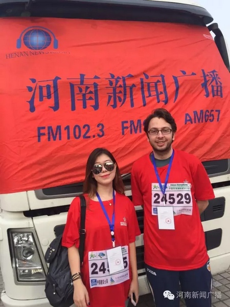 國(guó)家大賽,當(dāng)然要有國(guó)際友人哦。這位美女來(lái)自哈薩克斯坦,中文說(shuō)的非常溜,這位型男來(lái)自烏干達(dá)。友誼第一比賽第二,兩位國(guó)際友人說(shuō),比賽完要好好逛逛我們河南的青山秀水~