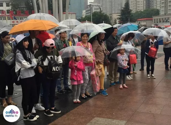 976給現(xiàn)場(chǎng)觀眾發(fā)放雨傘