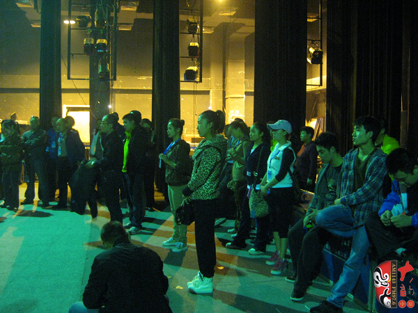每到一地演出都要提前走臺 這是走臺之前的集合