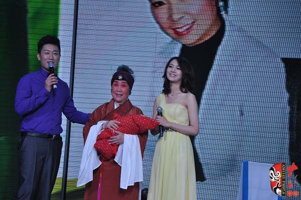 在6月16日舉辦的關(guān)小鳳個人戲曲專場中,關(guān)小鳳之女、24歲的張聰表演了豫劇《情斷狀元樓》“打神告廟”及《抬花轎》的“坐轎”兩折戲。畢業(yè)于河南省藝校的張聰現(xiàn)場表演稍顯稚嫩,但也獲得了觀眾的熱情鼓勵。張聰在接受記者采訪時說,自己戲校畢業(yè)之后到了福建省一閩劇團(tuán)工作,已經(jīng)有五、六年未接觸豫劇了。媽媽歷經(jīng)艱辛把自己帶大,特別不容易,這次為了支持媽媽的專場演出,她專程回河南、花十天時間趕排了兩折戲……在張聰表演完《抬花轎》的“坐轎”一折,一位身穿狀元紅袍、手捧鮮花、操南方口音的英俊小伙上臺向“周鳳蓮”求婚,經(jīng)張聰介紹,觀眾才豁然明白,英俊小伙乃她的老公,結(jié)婚時,媽媽關(guān)小鳳因為忙于工作未能參加,借此現(xiàn)場要補(bǔ)行跪拜大禮,以感謝母親的養(yǎng)育之恩。此情此景,讓現(xiàn)場不少觀眾為之動容。