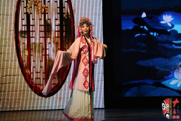 戲曲廣播主持人媛媛(前)飾公主、主持人一凡、侯妍、賈佳、吳雯飾宮女