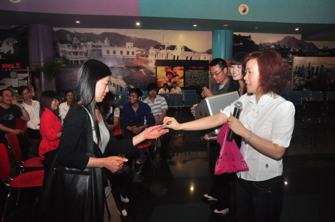 2010年5月8日上午10點,河南電臺旅游廣播FM99.9《故事大秀場》聽友觀影團(tuán),在鄭州百盛6樓的鄭州橫店影視電影城如期舉行。美女主持小佩、菲楊聯(lián)袂登場,與聽眾朋友精彩互動,現(xiàn)場有獎問答,鄭州橫店影視電影城也送出了各種精美禮品!互動期間來自安陽的聽眾非常的幸運(yùn),獲得了本次活動的大獎,一等獎:精美的純銀情侶對戒;還有2張價值45元的橫店影城貴賓券!大家?guī)е约旱亩Y物和歡聲笑語,與小佩、菲楊一起在位于鄭州百盛廣場六樓的橫店影城電影城觀看了催淚大片《歲月神偷》,這部影片感動了在場的每一位觀眾?;顒幼詈螅课坏綀龅男疫\(yùn)聽眾還獲得了鄭州橫店影視電影城贈送的寶龍新店“20元現(xiàn)金券”!參與活動的所有聽眾都收獲豐厚,真的是滿載而歸呀!在此特別感謝鄭州橫店影視城對本次活動的大力支持!故事大秀場我秀我飛揚(yáng)~~~