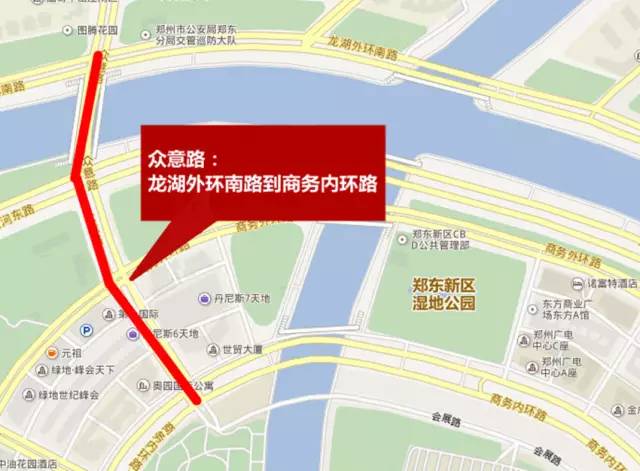 繞行路線:過(guò)往車(chē)輛和行人可沿中州大道、金水東路、黃河?xùn)|路、龍湖外環(huán)南路、農(nóng)業(yè)東路等道路繞行。