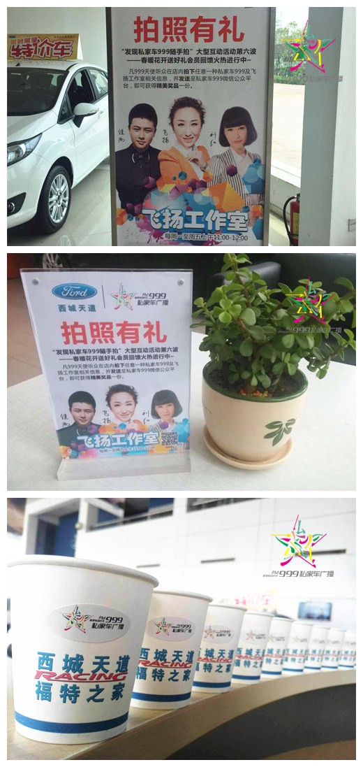 6月3日起至6月9日,凡999聽眾至聯(lián)盟商家店內(nèi)拍下私家車廣播logo以及“飛揚(yáng)工作室”任一相關(guān)信息,并發(fā)送關(guān)鍵詞“發(fā)現(xiàn)999”至我們微信公眾平臺(tái),同時(shí)留下你的“姓名+電話”,前50位車友均可獲贈(zèng)2升機(jī)油!
