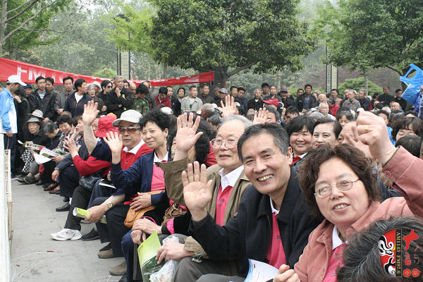 4月17日上午,在位于洛陽市中心、以體現(xiàn)周朝文化為主題的周王城廣場,“周公營建洛邑”雕塑旁,主辦方舉辦了一場別開生面的戲曲演唱會(huì)。來自鄭州、洛陽兩地的豫劇名家張?jiān)聵s、曾廣蘭、趙曉梅、王藝紅,著名演員徐俊霞、陳大華、劉亞林、曲韻、劉海功、沈萍,梨園春明星擂主張艷紅、謝憲笙等為來自全省各地的戲曲廣播《戲迷俱樂部》百余位戲迷和現(xiàn)場的廣大觀眾奉獻(xiàn)了精彩的戲曲唱段。藝術(shù)家們演唱的《洛陽橋》、《秦雪梅》、《七品芝麻官》、《對花槍》、《拷紅》、《收姜維》、《朝陽溝》、《倒霉大叔的婚事》、《小白鞋說媒》、《紅菊》等不同劇種、不同流派、不同行當(dāng)?shù)哪捴巳丝诘某?,博得觀眾一陣又一陣的掌聲,河南戲曲廣播主持人媛媛、李鋮表演的雙簧妙趣橫生,引得觀眾樂不可支。