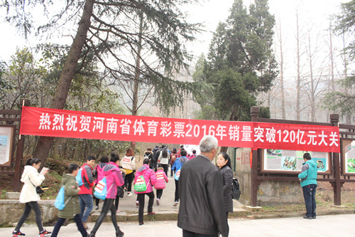 2017年1月1日元旦佳節(jié),“中國體育彩票”全國新年登高健身大會(華中主會場)暨信陽新年登雞公山健身大會“精彩開幕,來自社會各界的3000余名群眾、體彩代表及健身愛好者參加活動。新年登高意義深遠,在參與全民健身鍛煉體魄的同時,還能帶來美好的希望。在協辦單位河南省體育彩票管理中心的指示下,體彩信陽分中心組織了80名網點業(yè)主組成代表隊參賽,并在開幕式現場舉行了多種形式的宣傳活動。