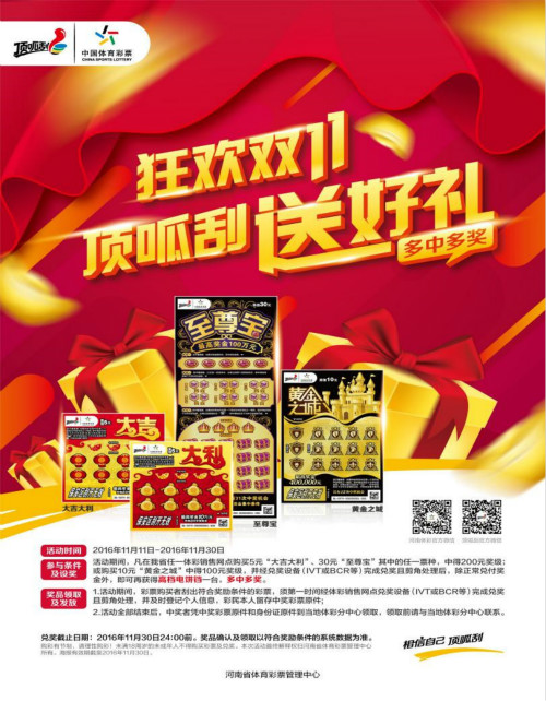 [摘要] 喜迎雙11,體彩狂歡節(jié)!推新票,速圍觀,擂響十一月,玩美“頂呱刮”,豪禮奉送進(jìn)行時(shí)!