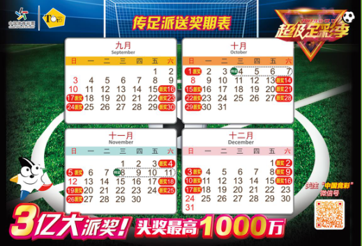 根據(jù)9月-12月的足彩競(jìng)猜場(chǎng)次安排,各周末獎(jiǎng)期受注賽事均以歐洲五大聯(lián)賽為主,其中9月份14場(chǎng)勝平負(fù)游戲和任選9場(chǎng)游戲的指定派獎(jiǎng)期為第17134期、17135期、17139期、17140期、17144期、17145期(10月1日停售)。也就是說,未來(lái)連續(xù)3個(gè)周末獎(jiǎng)期均有派獎(jiǎng)。今年10月2日-8日、11月6日-12日兩周是國(guó)際比賽日,周末五大聯(lián)賽將暫停,預(yù)計(jì)將指定當(dāng)周中獎(jiǎng)期派獎(jiǎng),受注賽事為各大洲世界杯預(yù)選賽及部分國(guó)家隊(duì)友誼賽。