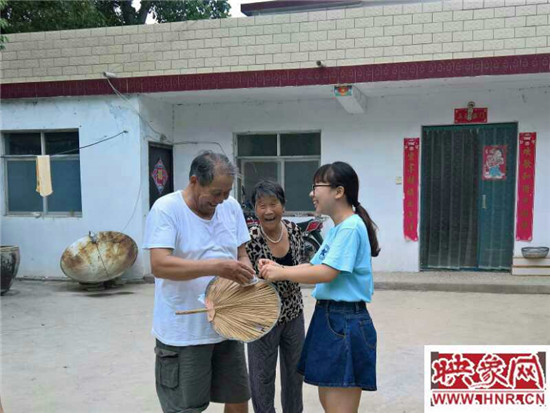 不多時,村委會的辦公室中就擠滿了聞訊而來的村民,志愿者們一一為他們測量血壓,不少村民離開前邀請志愿者們道“孩子,來俺家,給你們下碗好吃的撈面條”,更多的村民測完血壓后并未立即離去,而是留下與志愿者們親切交談,村民的質(zhì)樸與志愿者的奉獻精神在這一間小小的辦公室中緩緩交融,在炎炎夏日里帶來些許清涼。
