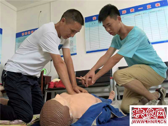 與此同時,地上擺放的人體模型引起了村民的極大興趣,他們在模型周圍坐成一圈,一邊觀察志愿者的演示一邊提問。部分村民還走上前來,在志愿者的指導下練習剛剛學到的心肺復(fù)蘇術(shù)。